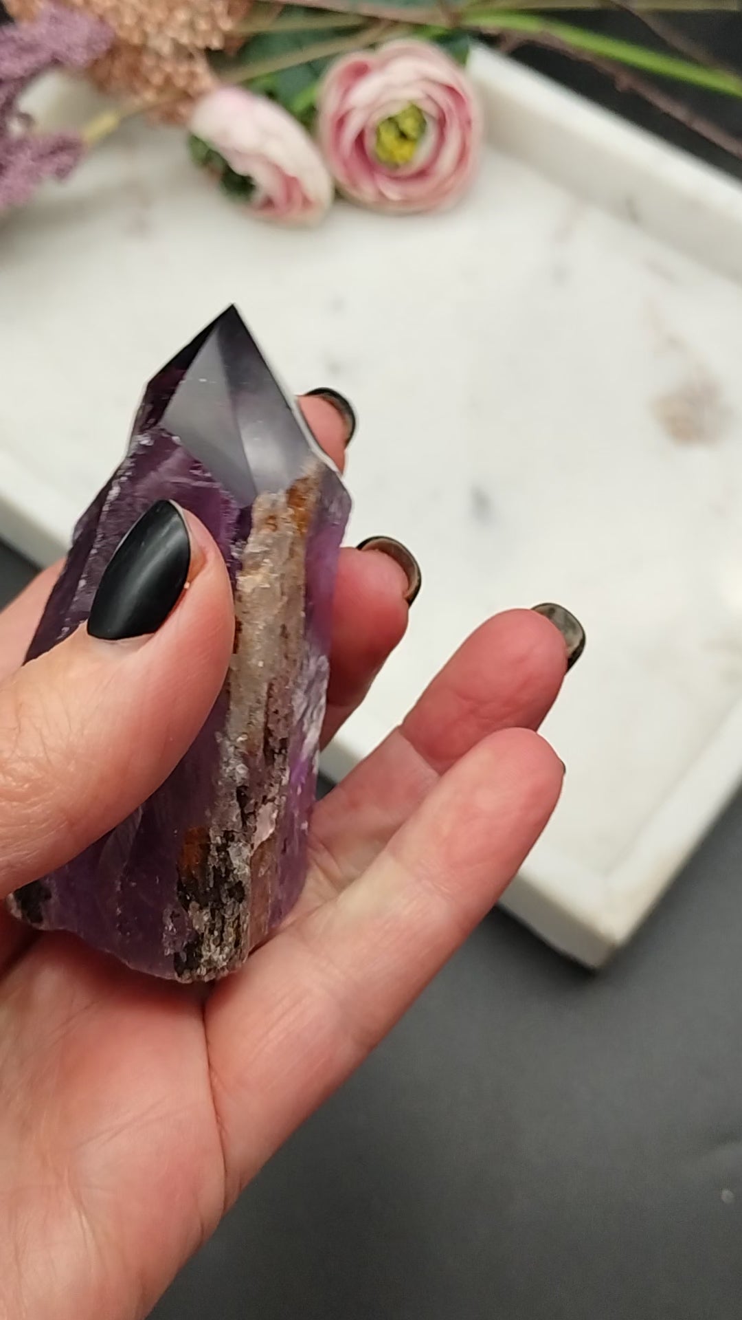 This lovely point id half polished and natural. 154 g and 7 cm tall