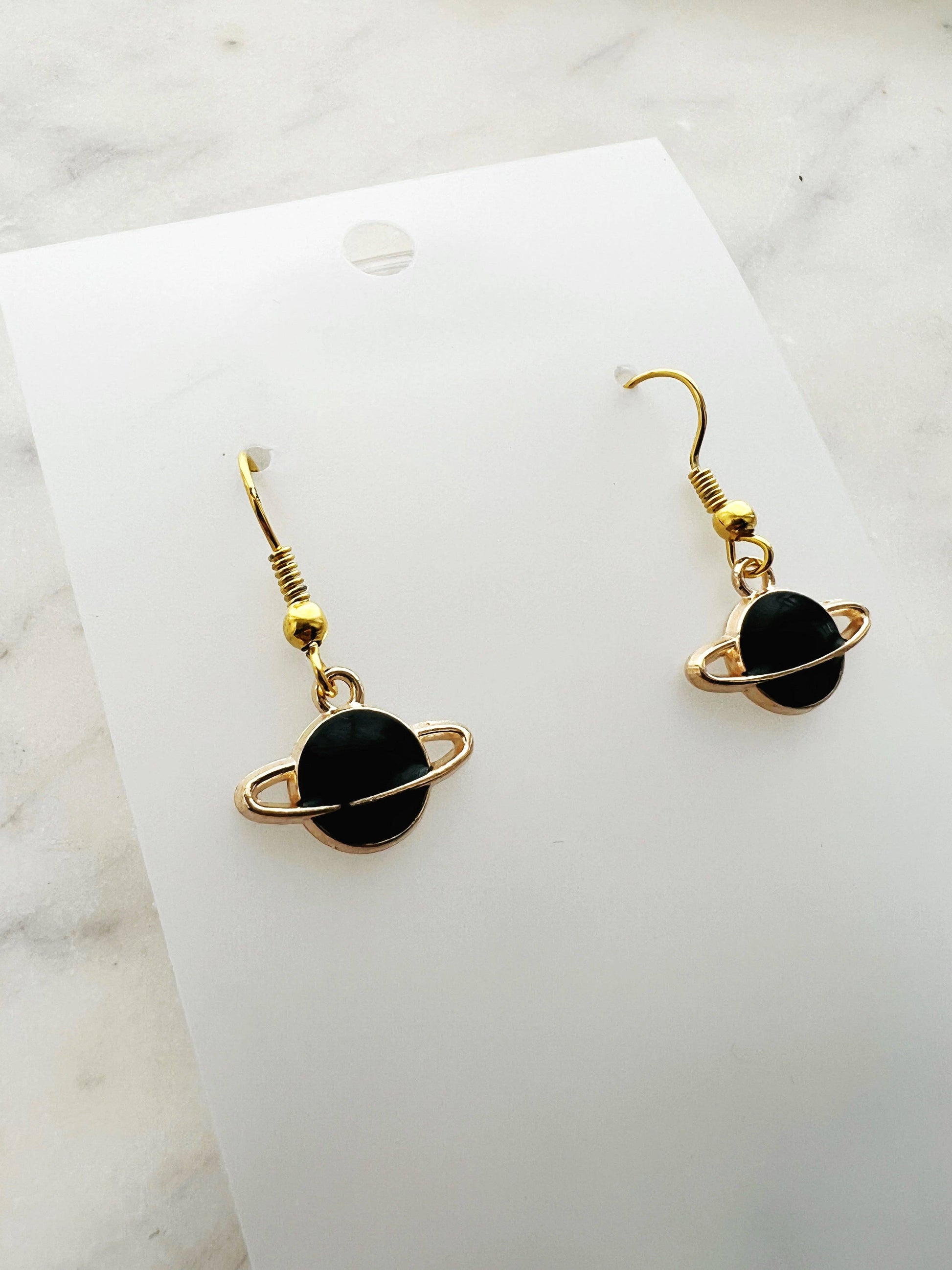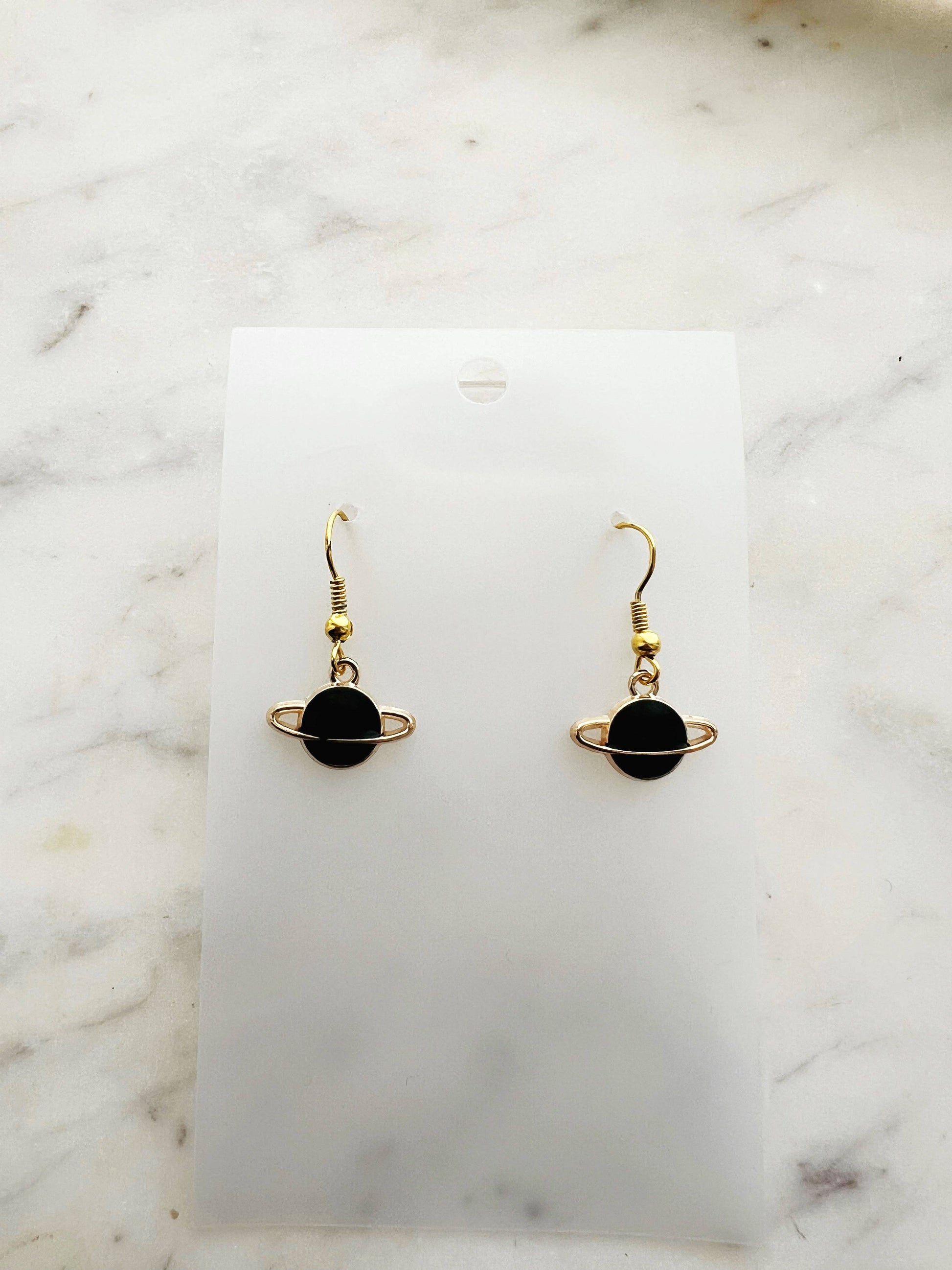 Shoot for the stars with these celestial Enamel Planet Earrings โ a dreamy design perfect for space lovers and stargazers alike! Featuring glossy black enamel planets with shimmering gold-tone rings, these earrings bring a touch of cosmic charm to your look.