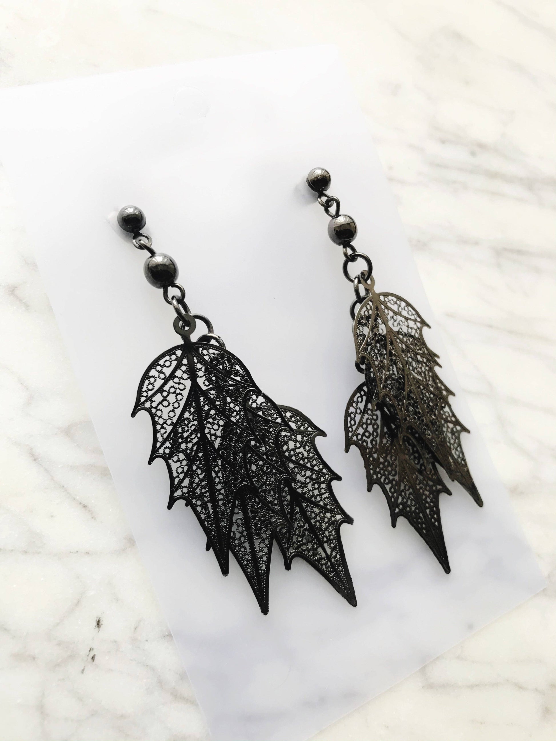 Gun Metal Leaves Earrings