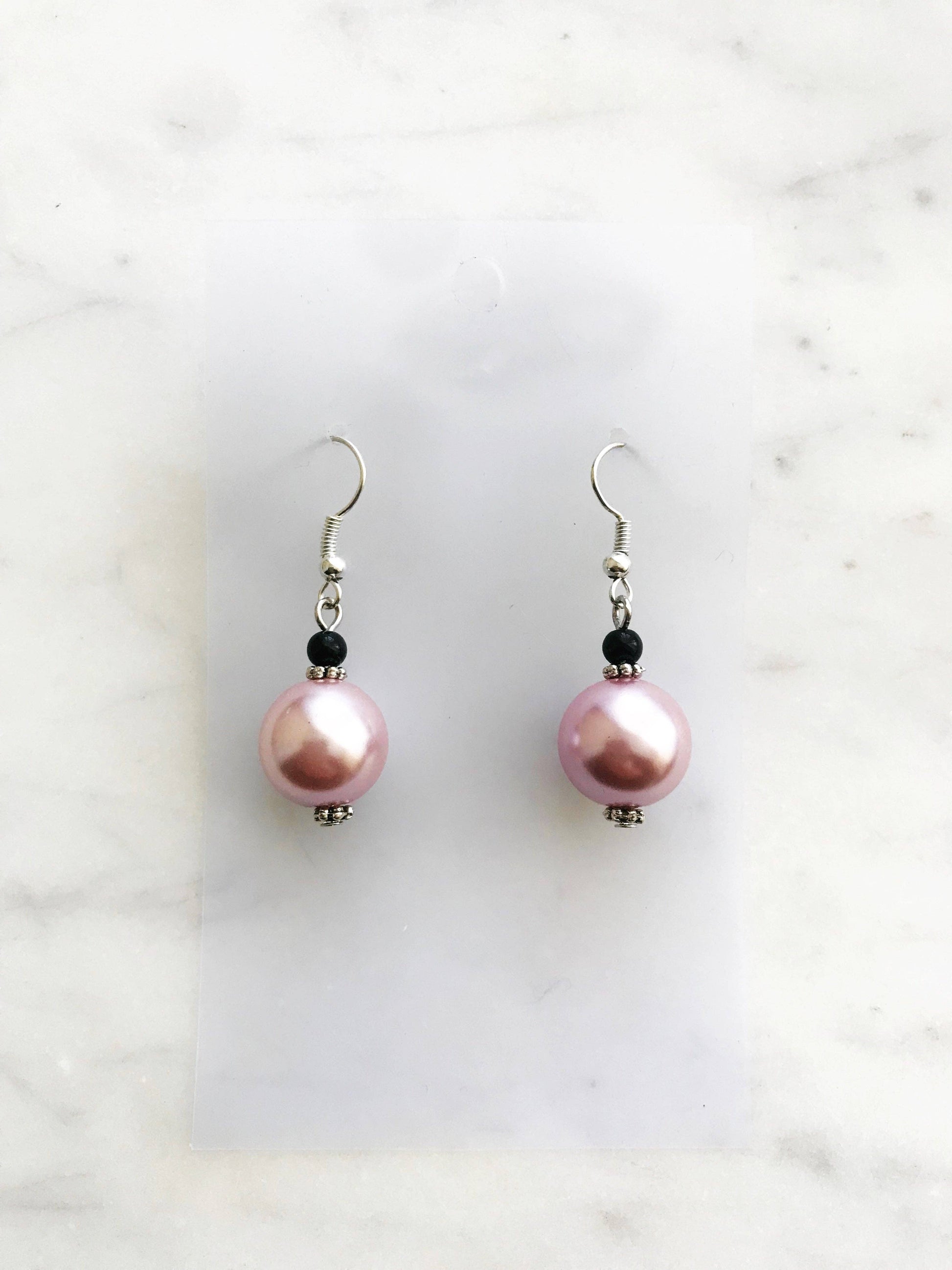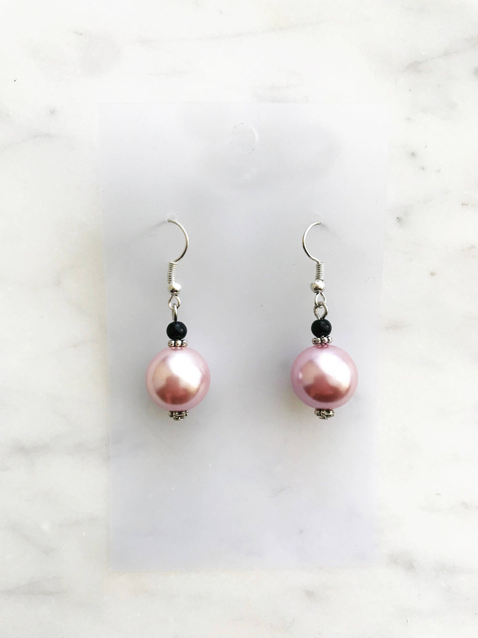 Spice up your earring collection with these quirky handmade Vintage Pink Glass Pearl and black glass bead earrings. Channel retro vibes and unleash your playful side while rocking these unique and stylish accessories. Perfect for adding a touch of fun to any outfit.