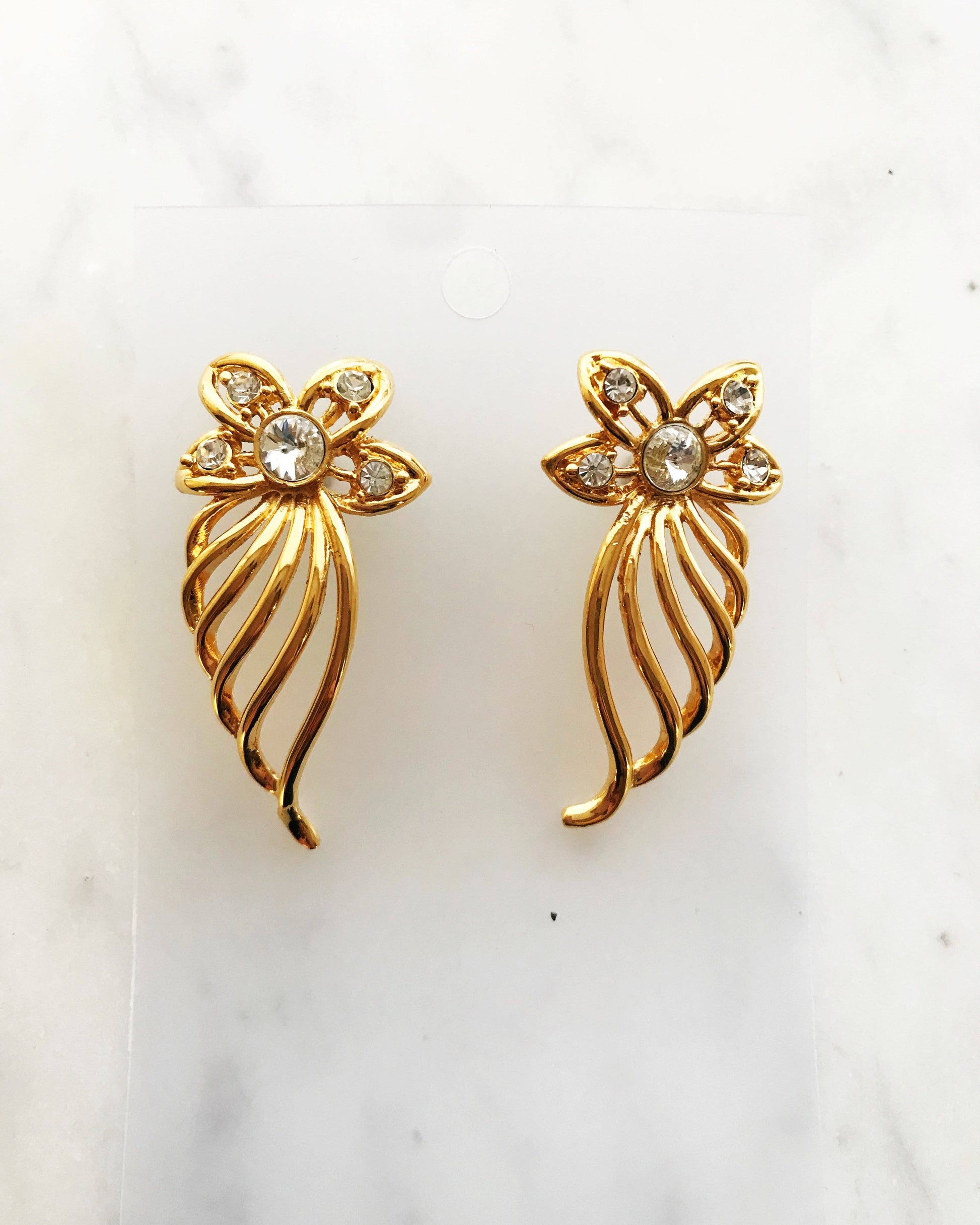 Vintage Retro Crystal Flower Earrings